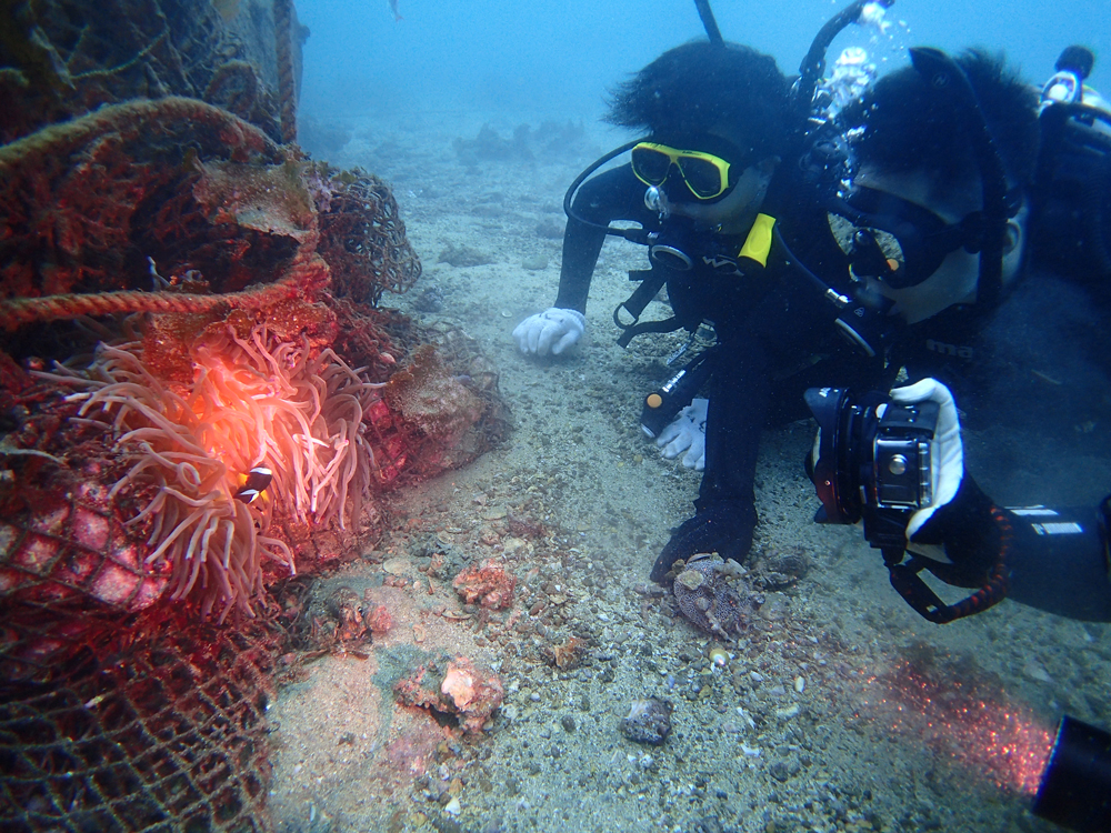(クマノミの卵保護を見ているところ)