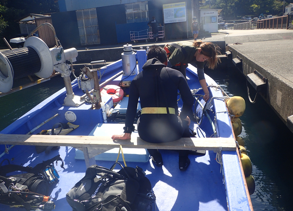 アドバンス講習が1名でココモ大瀬崎さんなら、1名でもボートを出してくれるということで、大瀬に移動しました。