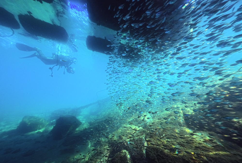 水が綺麗で、ハタンポやカタクチイワシの群れがすごいです!